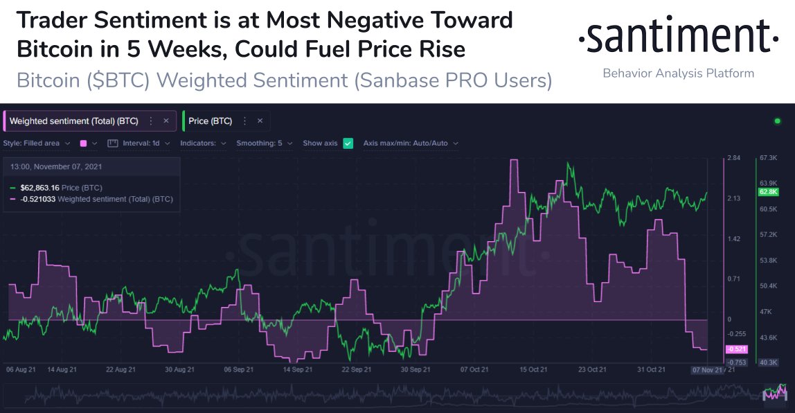 Previous Bitcoin price action was followed by a significant plunge in traders' sentiment. While Bitcoin was moving without strong buying power in the $63,000-$58,000 range, traders started to lose their optimism, according to Santiment.